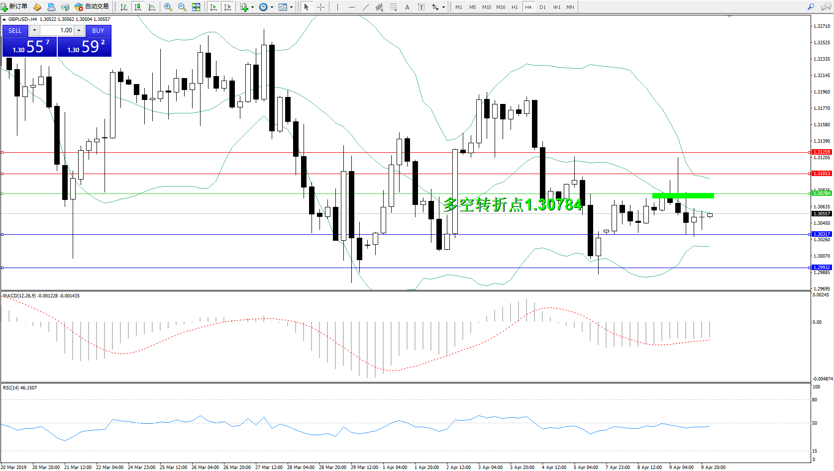 交易策略:1.30784下方看跌,目标1.30317、1.29932