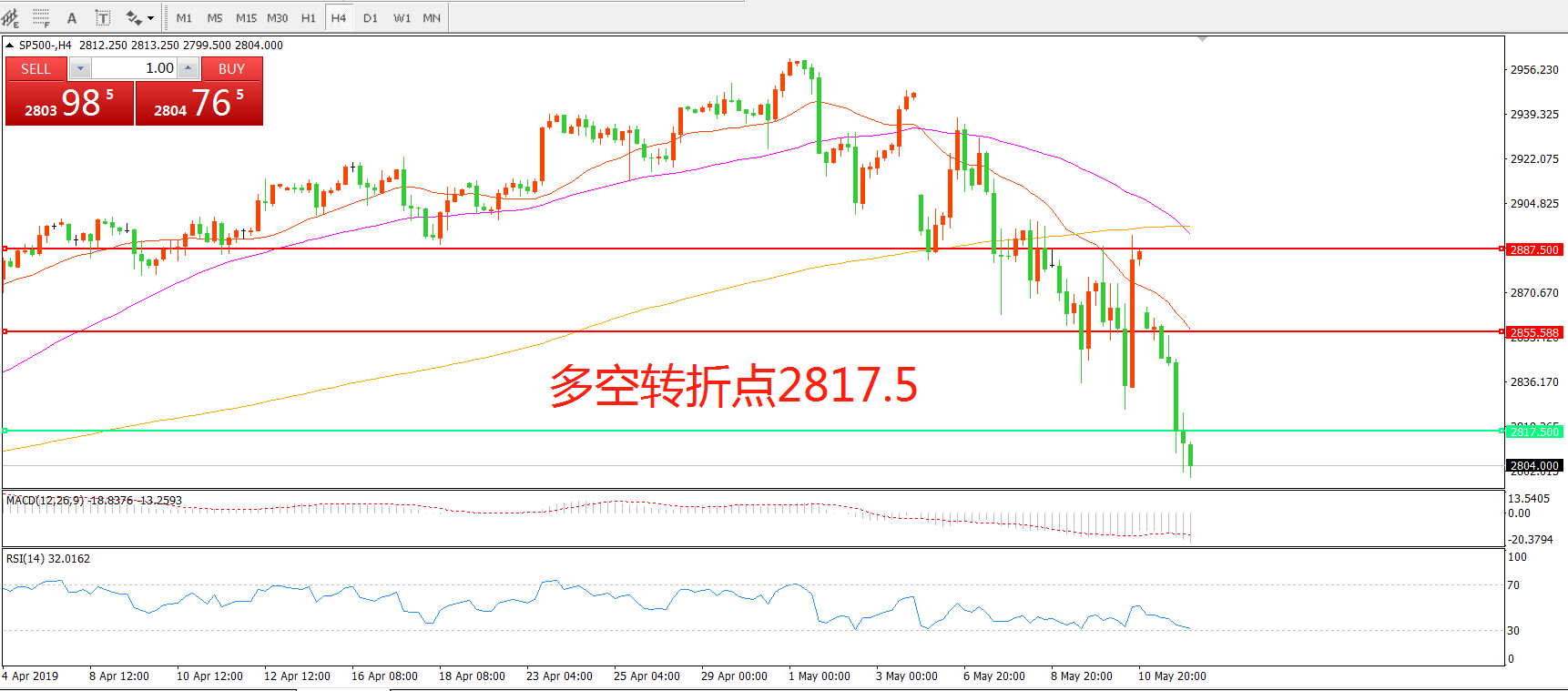 交易策略:在2817.5.之下看跌,目标2787.50     2746.00