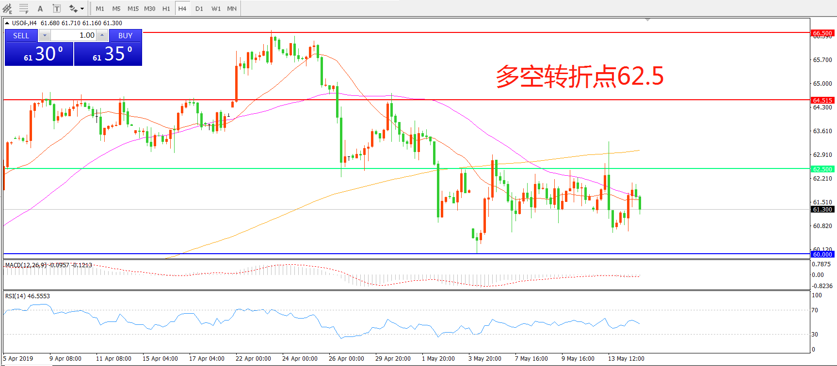 5月14日周二发布的OPEC月报称,4月原油产量比上月减少3000桶/日,至3003.1万/日,原因是伊朗和减产协议受到美国制裁的伊朗,其原油生产量大幅下降至255.4万桶/日,降幅为6%。而受到减产协议影响的沙特,其原油产量也降低至974.2万桶/日。值得一提的是,此前OPEC、俄罗斯和其他非OPEC成员国达成的减产协议是否延长期限,将取决于6月25日至26日举行的会议。而美国能源信息署(EIA)周二发布短期能源展望报告显示,将原油价格及美国原油产量预期双双上调。这为油价提供有效支撑,美国WTI原油周二(5月14日)收报61.20美元/桶。