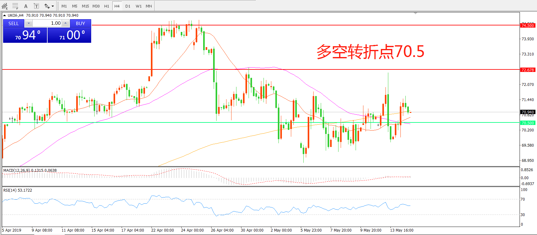 交易策略:在70.50之上看涨,目标72.50    74.50