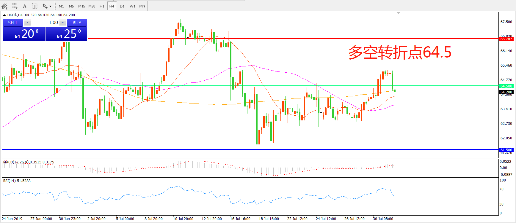 交易策略:在64.50之下看跌,目标61.50 57.50