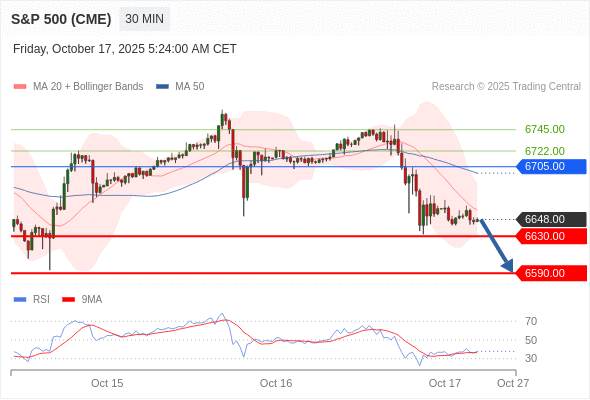 交易策略: 在 6705.00 之下,看跌,目标价位为 6630.00 ,然后为 6590.00 。