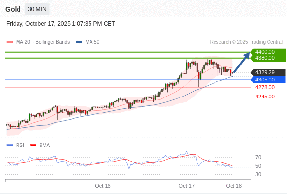 在 4305.00 之上,看涨,目标价位为 4380.00 ,然后为 4400.00 。