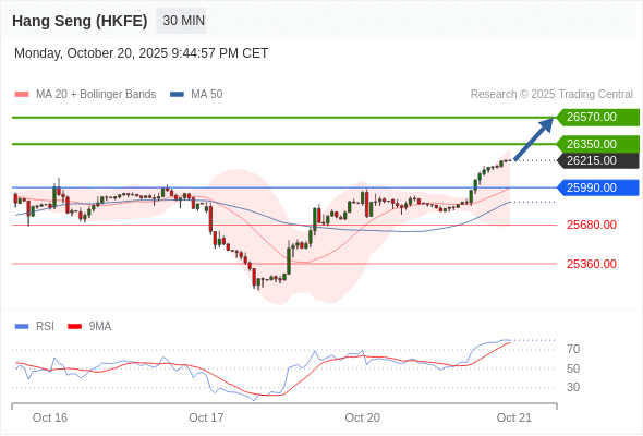 在 25990.00 之上,看涨,目标价位为 26350.00 ,然后为 26570.00 。
