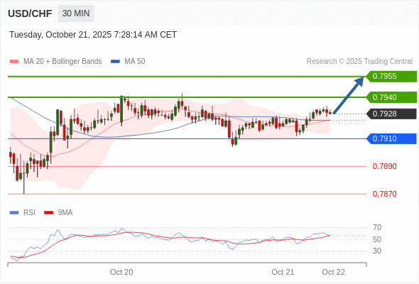 在 0.7910 之上,看涨,目标价位为 0.7940 ,然后为 0.7955 。