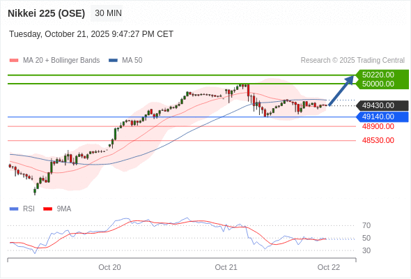 日经225股指期货 (OSE) 当日内: 超短线(当日内)支撑位在49140.00附近。