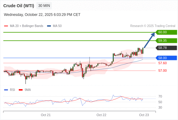 在 58.00 之上,看涨,目标价位为 59.35 ,然后为 60.00 。