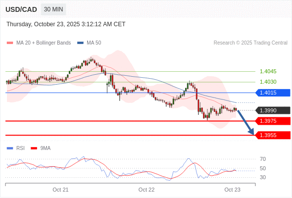 美元/加元 当日内: 期待1.3975。