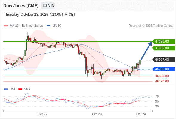 在 46760.00 之上,看涨,目标价位为 47090.00 ,然后为 47190.00 。