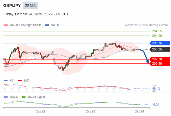 英镑/日元 当日内 : 看跌,在 203.76 之下。