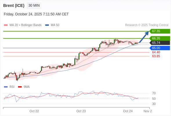 布伦特原油 (ICE) (Z5) 当日内: 在65.00之上,看涨。