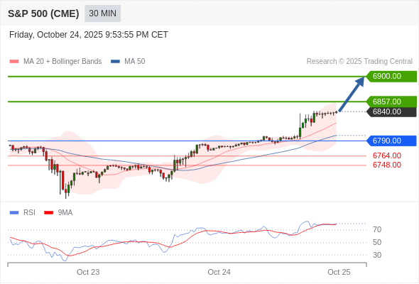 在 6790.00 之上,看涨,目标价位为 6857.00 ,然后为 6900.00 。