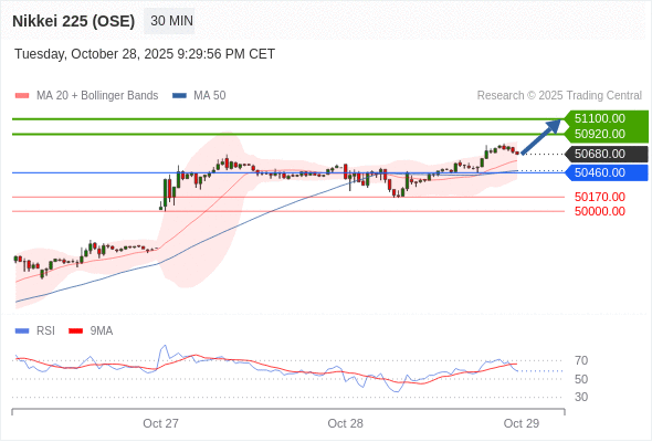 在 50460.00 之上,看涨,目标价位为 50920.00 ,然后为 51100.00 。
