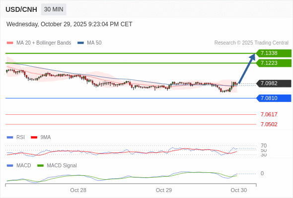 备选策略: 如跌破 7.0810 ,USD/CNH 目标方向定在 7.0617 和 7.0502 。