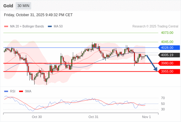 在 4028.00 之下,看跌,目标价位为 3980.00 ,然后为 3955.00 。
