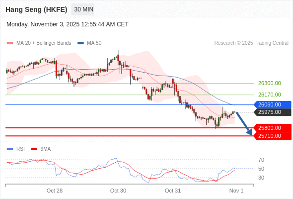 交易策略: 在 26060.00 之下,看跌,目标价位为 25800.00 ,然后为 25710.00 。