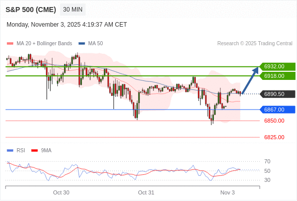 在 6867.00 之上,看涨,目标价位为 6918.00 ,然后为 6932.00 。
