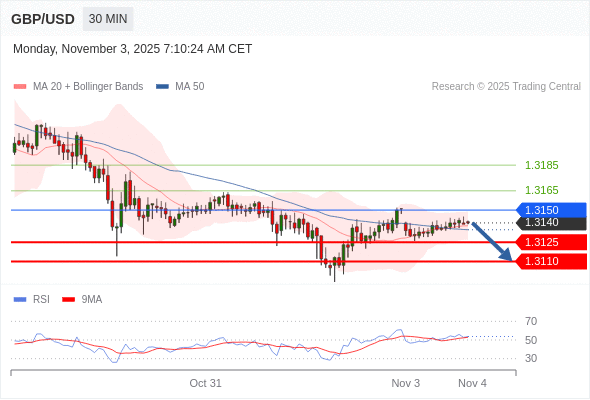 交易策略: 在 1.3150 之下,看跌,目标价位为 1.3125 ,然后为 1.3110 。