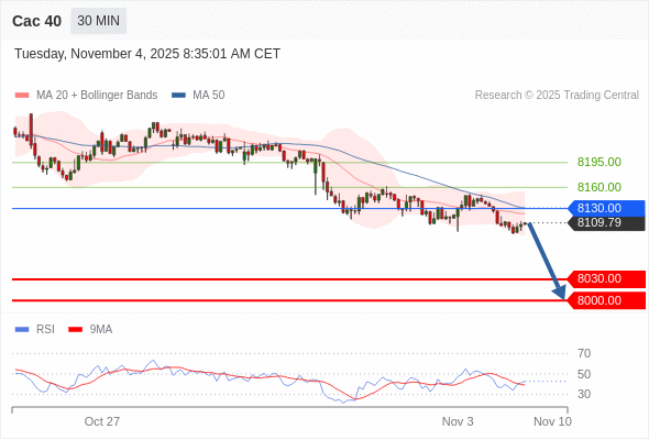 交易策略: 在 8130.00 之下,看跌,目标价位为 8030.00 ,然后为 8000.00 。