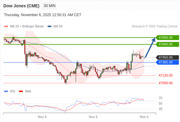 在 47365.00 之上,看涨,目标价位为 47680.00 ,然后为 47800.00 。