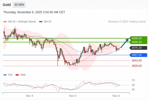 在 3957.00 之上,看涨,目标价位为 3990.00 ,然后为 4000.00 。