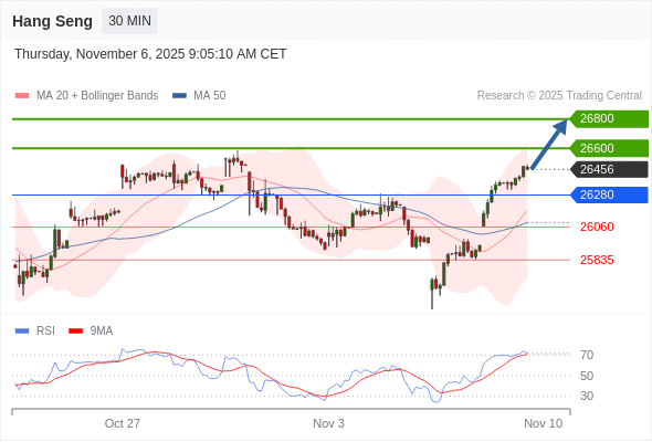 在 26280 之上,看涨,目标价位为 26600 ,然后为 26800 。