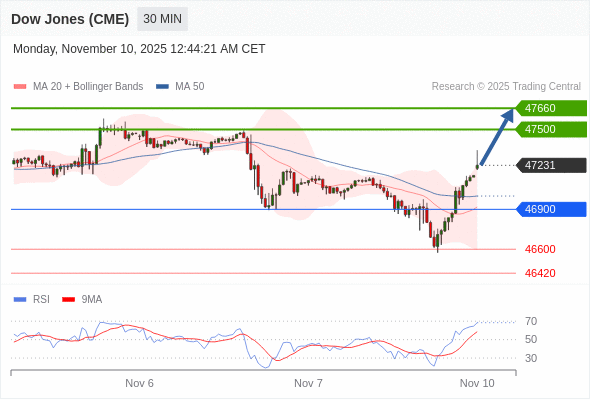 在 46900 之上,看涨,目标价位为 47500 ,然后为 47660 。
