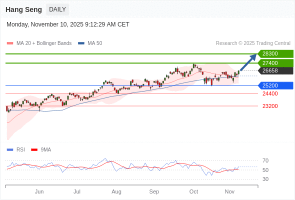 恒生指数 短线: 反转向上。