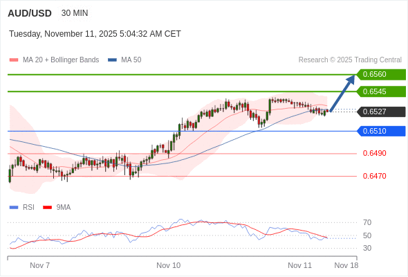 在 0.6510 之上,看涨,目标价位为 0.6545 ,然后为 0.6560 。