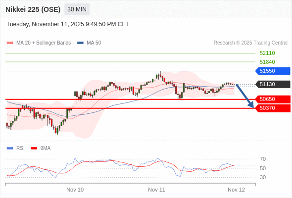 在 51550 之下,看跌,目标价位为 50650 ,然后为 50370 。