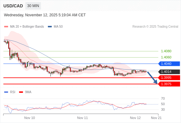 在 1.4040 之下,看跌,目标价位为 1.3995 ,然后为 1.3975 。