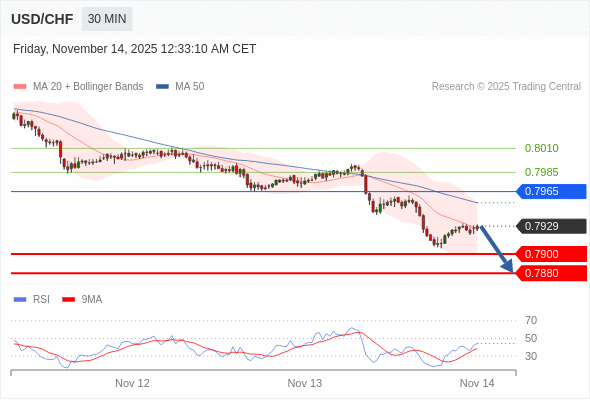 在 0.7965 之下,看跌,目标价位为 0.7900 ,然后为 0.7880 。