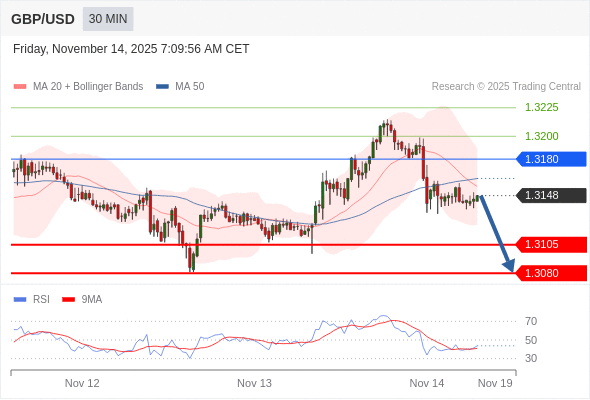 在 1.3180 之下,看跌,目标价位为 1.3105 ,然后为 1.3080 。