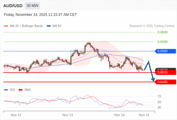 在 0.6560 之下,看跌,目标价位为 0.6515 ,然后为 0.6495 。