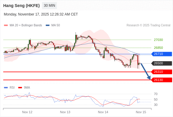 香港恒生指数期货 当日内: 目标位为26130。