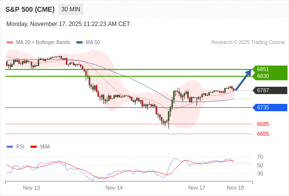 在 6735 之上,看涨,目标价位为 6830 ,然后为 6851 。