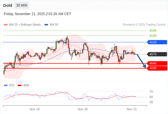 在 4110 之下,看跌,目标价位为 4045 ,然后为 4030 。