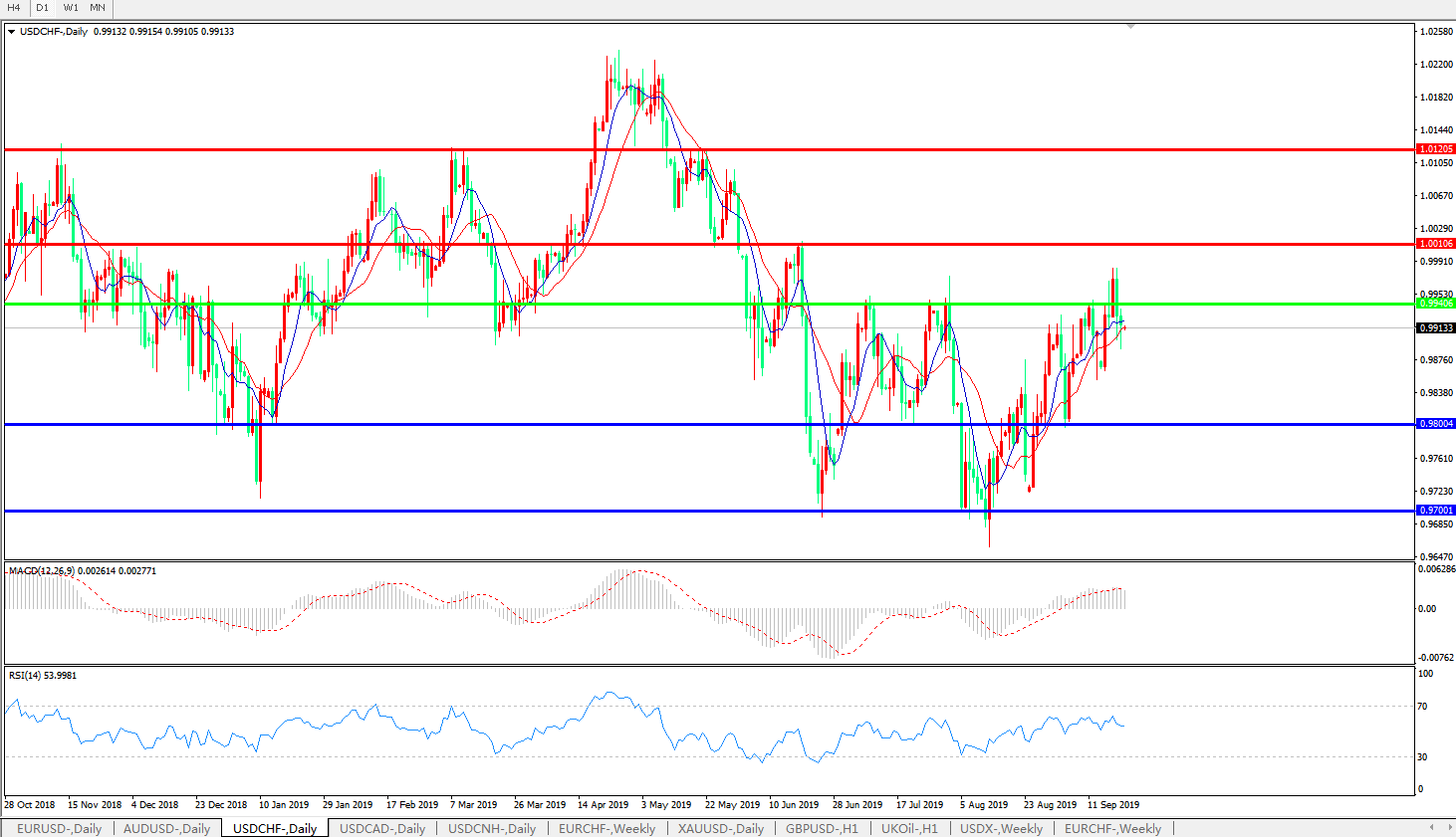 美元瑞郎USDCHF   日线图: