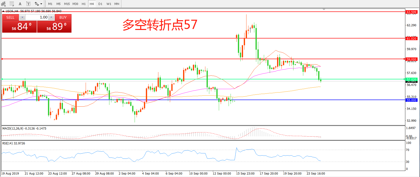交易策略: 在57.00之下看跌,目标55.00   52.50