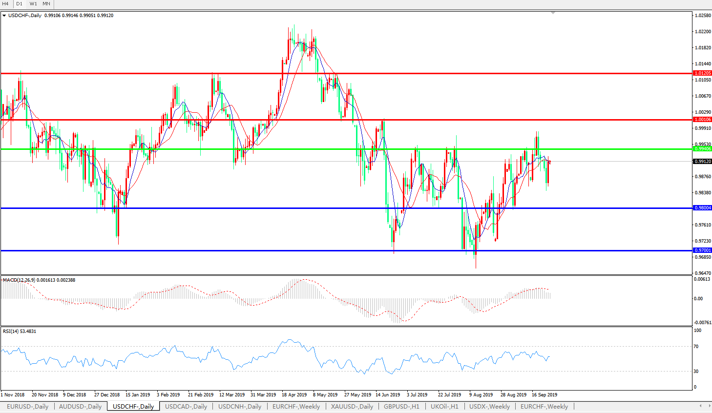 美元瑞郎USDCHF   日线图: