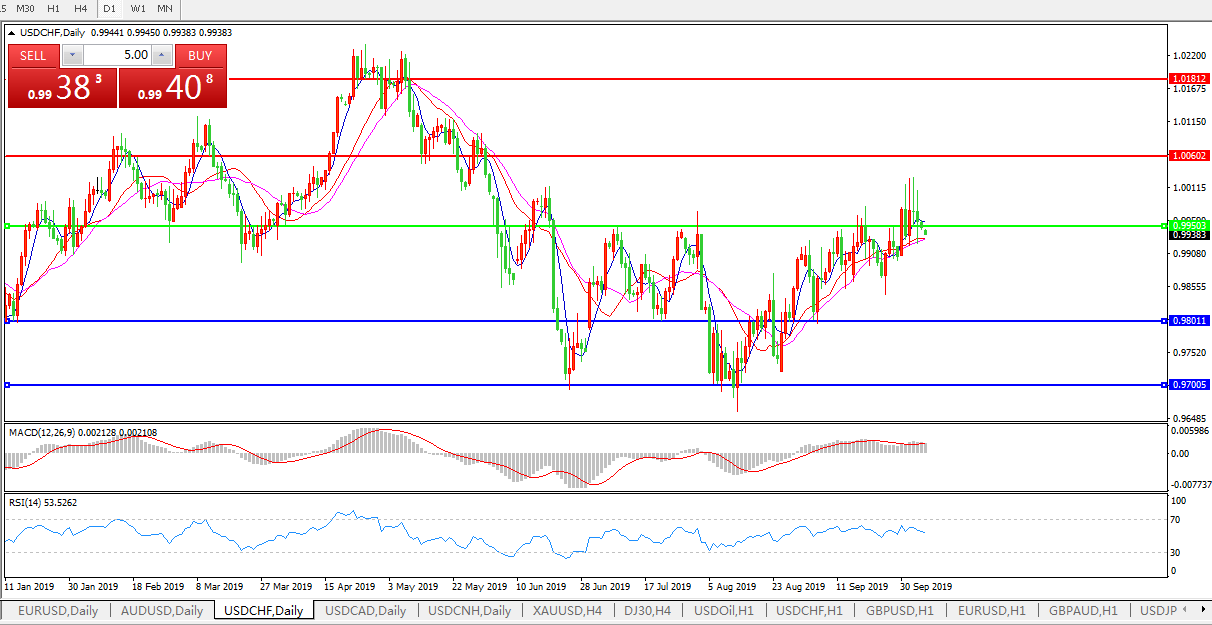交易策略:0.9950下方看跌,目标0.9800、0.9700