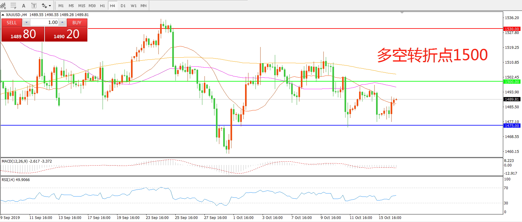 交易策略:在1500.00之下看跌,目标1475.00   1450.00