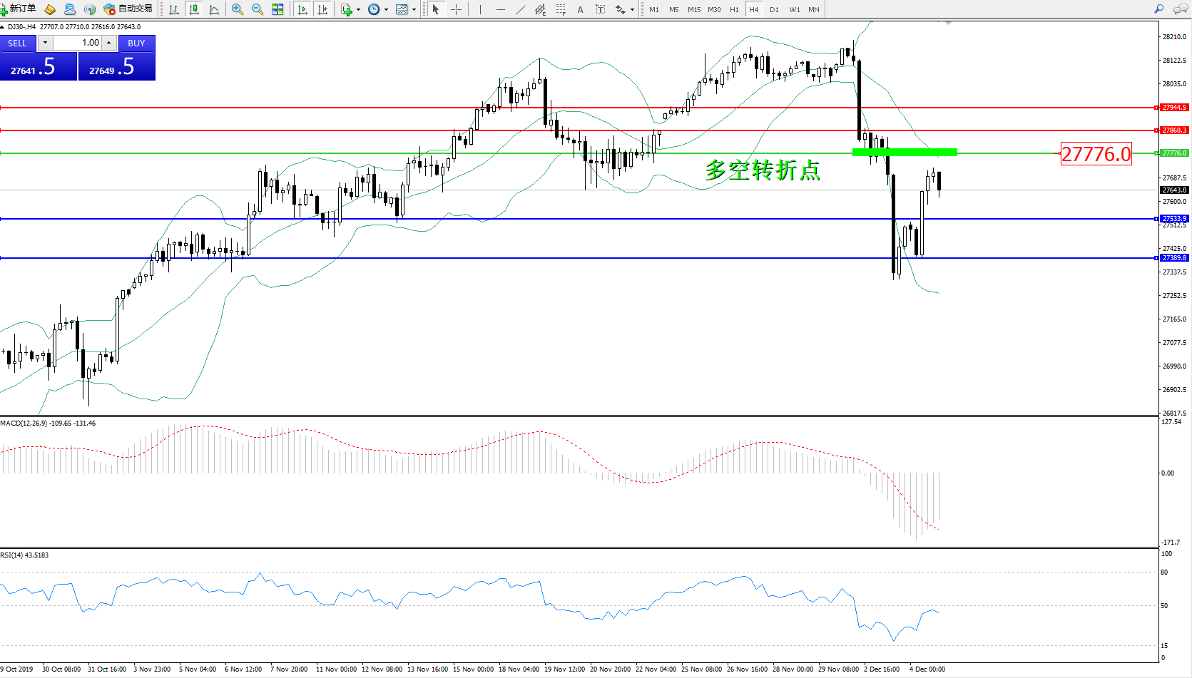 道琼斯指数12月4日(周三)收盘上涨147.00点,涨幅0.53%,报27649.78点。美股周三收高,扭转了此前连续三个交易日下跌的行情。投资者仍在密切关注全球商贸局势的进展。有关商贸协议仍在取得进展的报道提振了市场情绪,抵消了美股总统特朗普周二发表评论所引发的担忧。