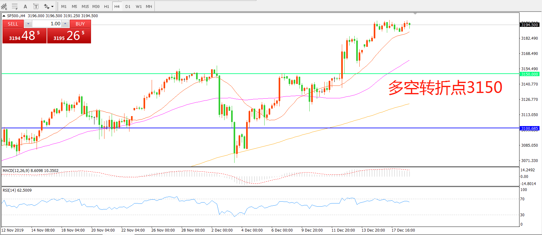 备选策略:在3150.00之下看跌,目标3100.00        3060.00