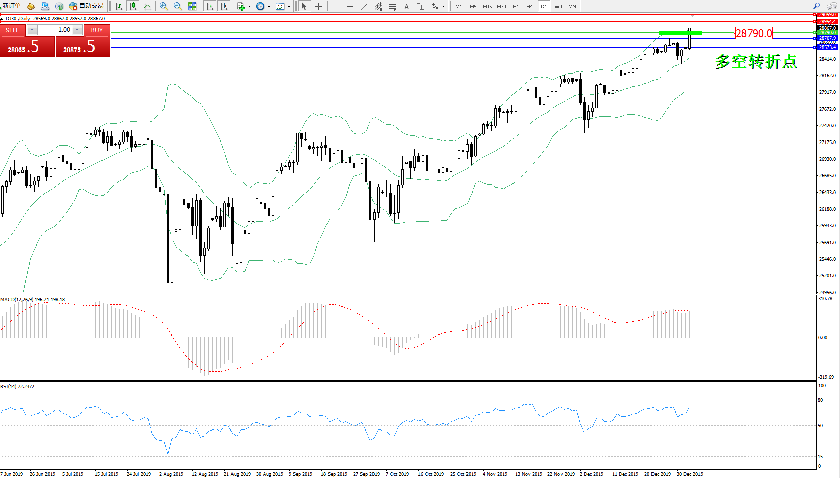 道琼斯指数12日(周四)收盘上涨330.40点,涨幅1.16%,报28868.80点。美国三大股指2020年首个交易日齐创收盘历史新高,延续2019年很多资产类别强劲上涨的势头。投资者为中国央行支持经济的最新政策举措而欢欣鼓舞。苹果、Alphabet和耐克等大型股均创下历史新高。这是过去十年来美国股市的最佳开局之一,去年年底前夕,有以良好流动性推动的动能类涨势,这种动能本身就在持续。在大多数主要资产经历了辉煌的2019年之后,现在的焦点转向了未来一年。