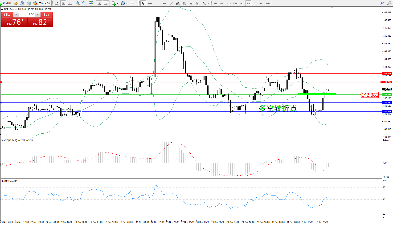 交易策略:142.381上方看涨,目标143.237143.819