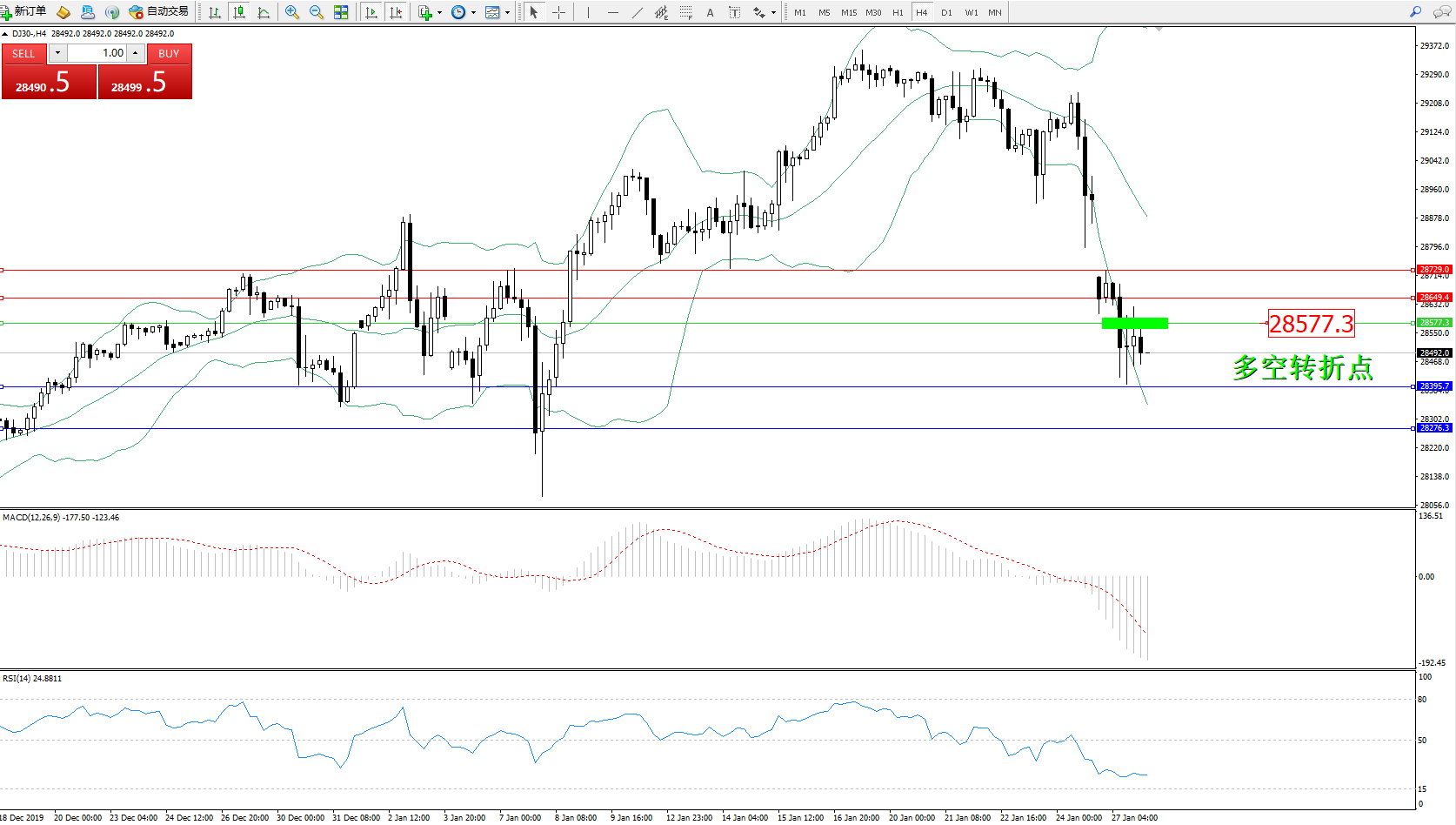 道琼斯指数1月27日(周一)收盘下跌454.50点,跌幅1.57%,报28535.19点。美国股市周一重挫,道琼斯工业平均指数抹去了今年以来的涨幅,全球公共卫生事件高烧不退,引发市场恐慌。因对全球公共卫生事件的持续担忧引发了全球股市的抛售;投资者如今先卖出,然后再发问,市场厌恶不确定性,没有人知道它对全球经济的影响会有多大。中国是全球增长的最大驱动力,所以疫情在中国爆发,没有比这更糟糕的了。