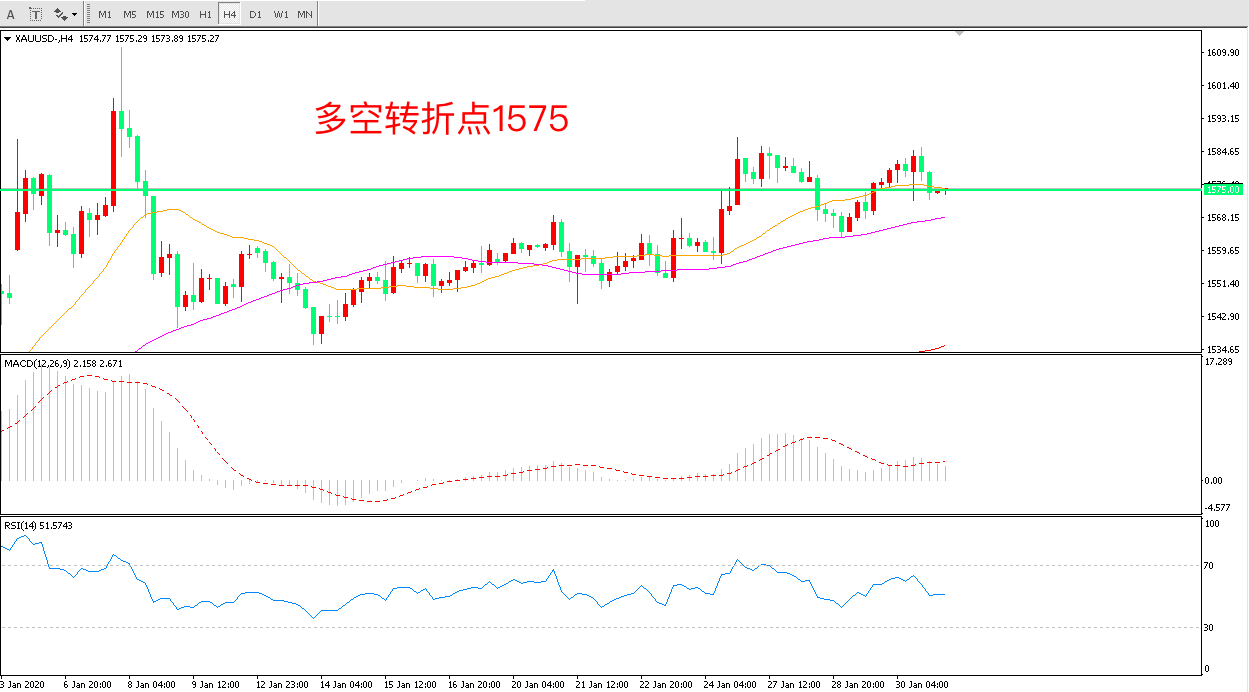 备选策略:在1575.00之下看跌,目标1530.00 1500.00