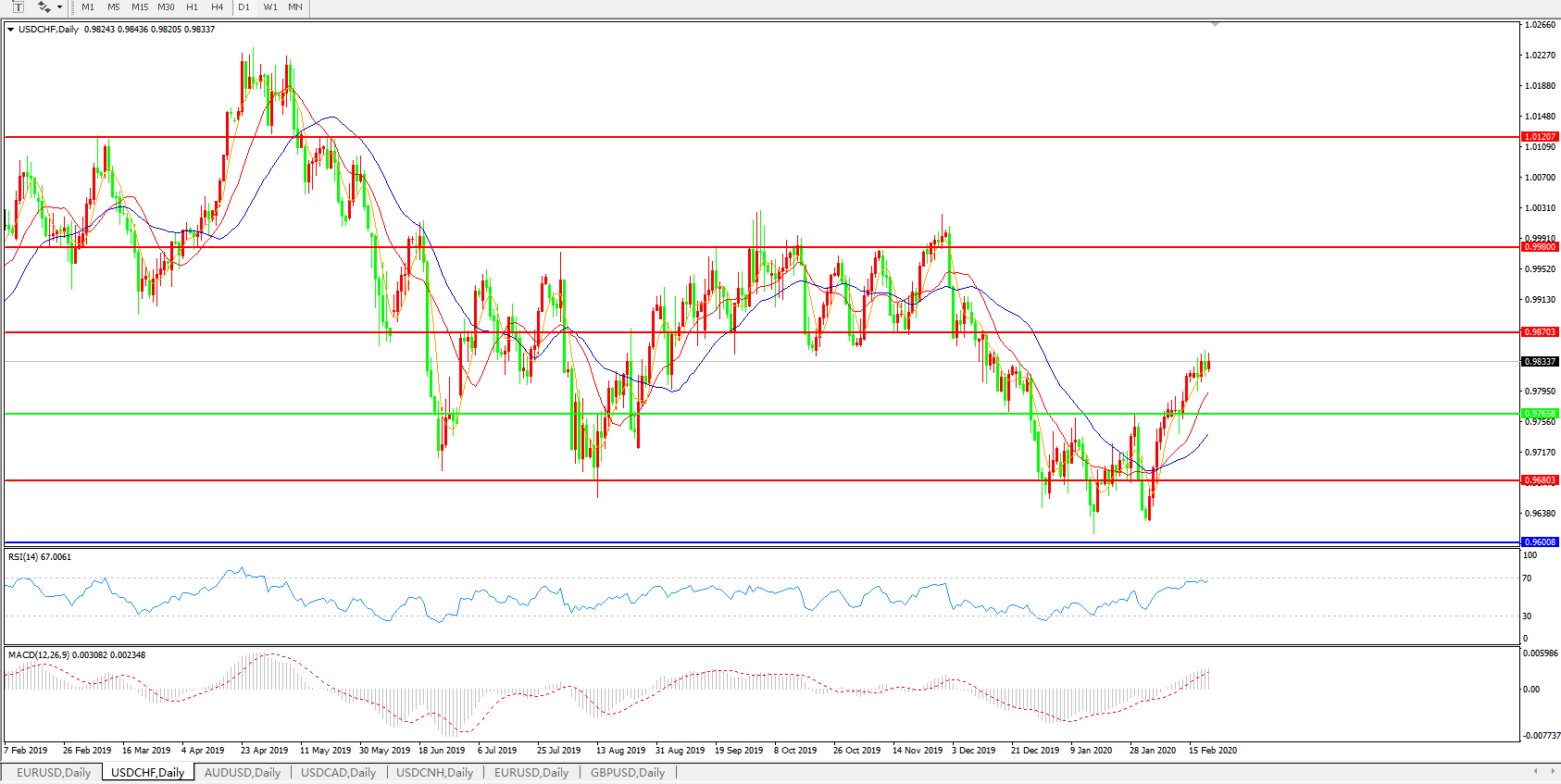 技术面简析:日线图均线呈多头排列,汇价持续小幅度走强,多头维持韧性,MACD运行于0轴上方且量能维持放量,RSI震荡中小幅度攀升,预计短期汇价将进一步走高。