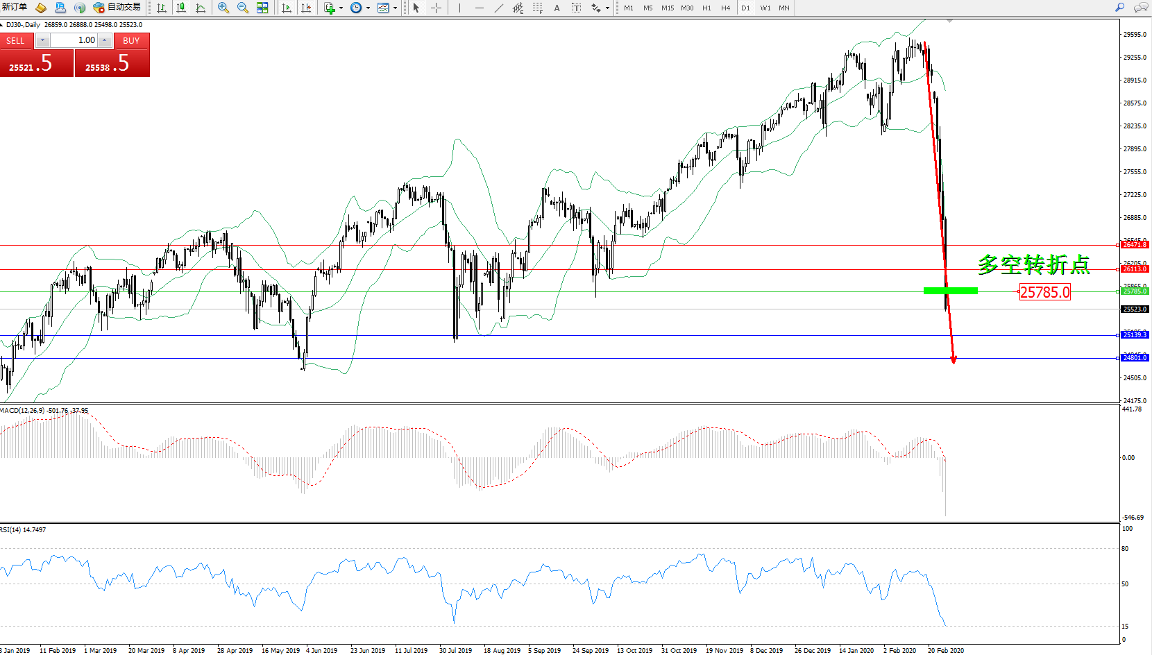 道琼斯指数227日(周四)收盘下跌1191.60点,跌幅4.42%,报25766.03点。美股三大股指大幅收跌,道指跌超1000点;美国股市恐慌指标突破上次熊市临近时的水平,全球股市今年料继续上涨,但出现10%或更大幅度修正的可能性高,最大的风险是公共卫生事件对经济造成严重冲击。去年是股市的丰收年,调查的17大全球股指全部收高,而且只有一个股指的升幅没有达到两位数。但是今年迄今,除一个股指外,其他股指全部下跌,其中大部分跌幅都出现在过去五个交易日,因担心公共卫生事件大流行、扰乱供应链,并对全球经济产生重大冲击。公共卫生事件可能造成严重经济损害,甚至引发全球经济衰退的担忧,已经打击MSCI全球所有国家指数跌至两个半月低点,仅仅本周全球股市市值就蒸发近3万亿美元